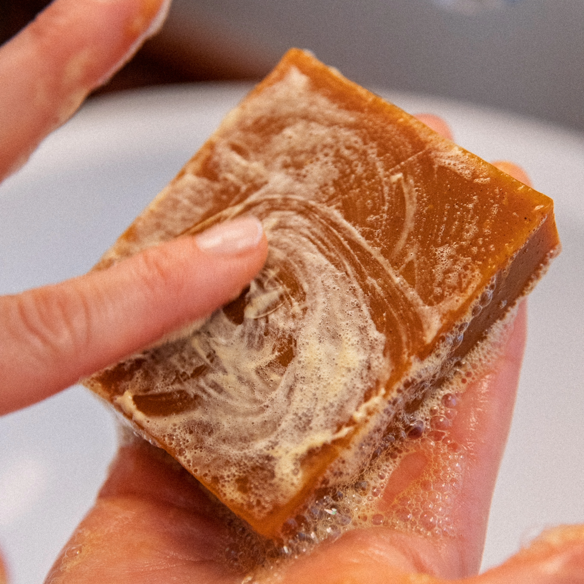 Gracias al aceite de caléndula ecológico macerado en nuestro propio taller, este jabón ofrece una limpieza delicada con beneficios reparadores. Su espuma cremosa, su aroma fresco y su textura envolvente lo convierten en una elección ideal para el uso diario en cuerpo y rostro.